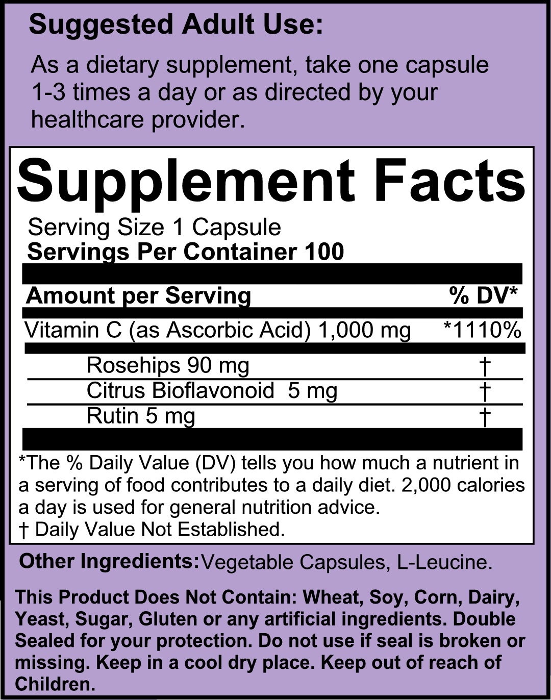 The human body cannot produce Vitamin C, deficiencies of it can lead so serious illness, which is why only a doctor can determine if there is a lack of this important antioxidant. Time Honored Formulas presents an exogenous source of Vitamin C crafted in Vegetable Capsules; our Vitamin C Complex Plus combines natural sources of vitamin C, Rutin which is a bioflavonoid found in a wide variety of plants and vegetables including citrus fruit; Citrus Bioflavonoid which is a generic term used to describe biologically active members of the group of plant-derived compounds known as flavonoids, Rosehips which is the fruit of wild rose, these fruits are one of the most concentrated sources of vitamin C available; and finally Ascorbic Acid which is the chemical name for vitamin C, if you think you need extra ascorbic acid please consult a physician.
